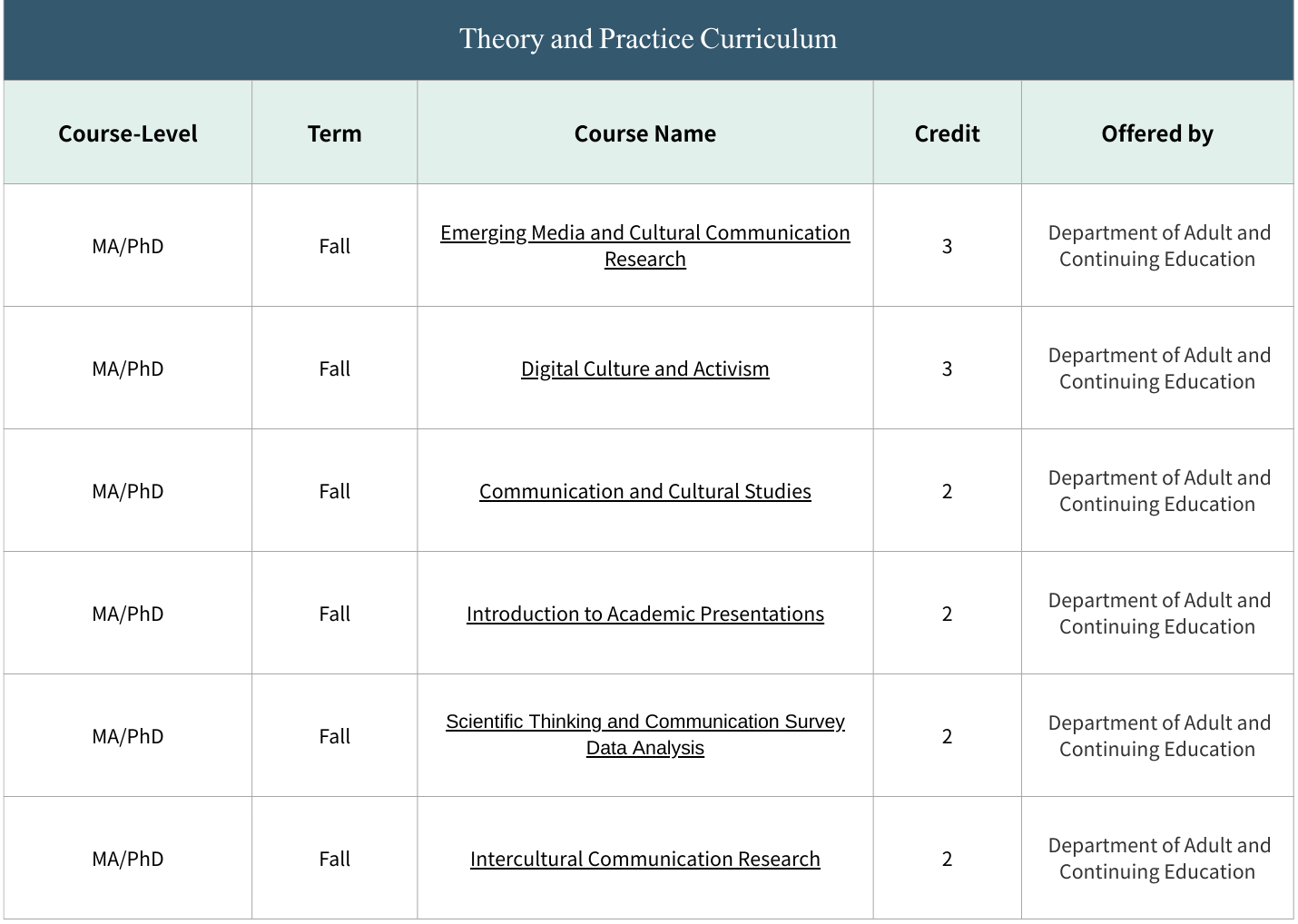 Courses Bachelor Undergraduate Course List Estimated graduated credit structure Master Course Works & Program Requirement Required Courses Elective Courses Ph. D. Course Works & Program Requirement Required Courses Elective Courses Graduate Program in English(Master and Ph. D.) Course Structure for M.A. Program Course Structure for Ph. D. Program Elective Courses